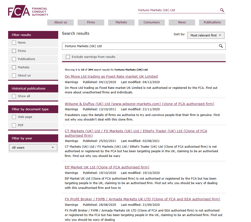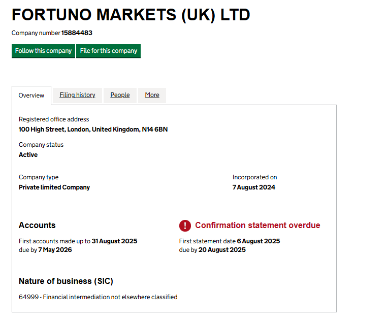 Брокер Fortuno Markets Ltd зарегистрирован в Великобритании, но документы просрочены.