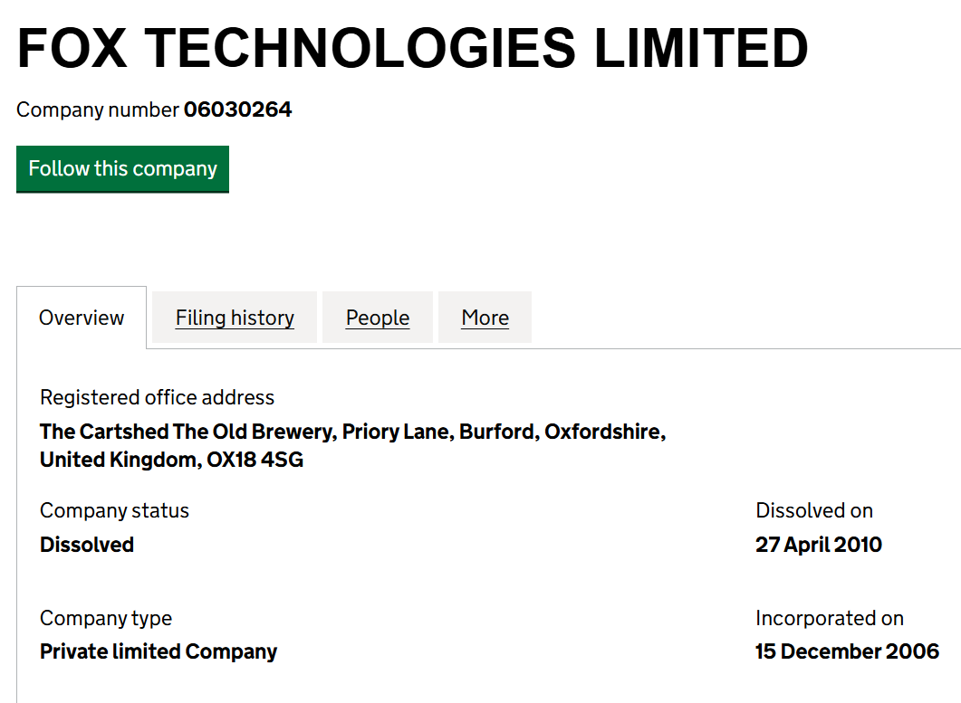 Владельцы считают свой проект ведущим в области, ведь здесь объем торгов на бирже превышает $10,000,000 в сутки, средства пользователей хранятся на холодных кошельках, а компания официально зарегистрирована. Подтверждений популярности нет, в рейтингах биржа «Фоксво» тоже отсутствует, значит, ликвидность и резервы никак не проверить, а регулятор Gov uk показывает, что указанная организация расформирована еще в 2010 году.