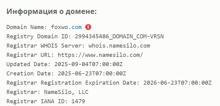 - Домен был зарегистрирован в конце июня 2025 года, что противоречит заявлениям о длительной работе платформы.