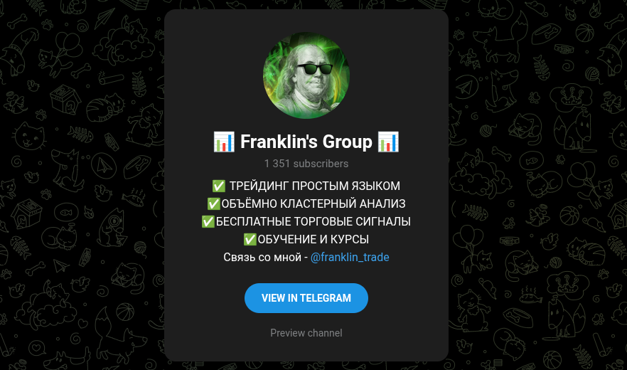 Franklins Group — канал в Телеграмм для тех, кто еще верит в легкие деньги на бинарных опционах. По крайней мере, именно такое впечатление складывается при первом знакомстве с проектом. Создатель паблика с аватаркой Бенджамина Франклина обещает подписчикам стабильную прибыль на дистанции, точные сигналы и обучение трейдингу с нуля. Разберем детально, что именно предлагает этот ресурс и почему слепое доверие его автору может стоить вам депозита.