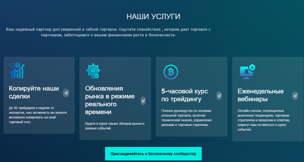 Платная подписка формально отсутствует, но сама модель монетизации строится на партнерских программах брокера и проп-компаний, где доход зависит от торговой активности привлеченных пользователей.