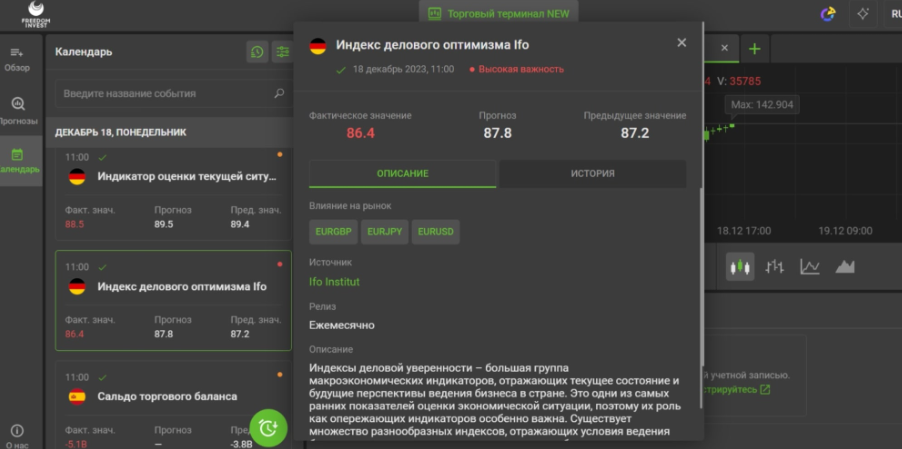 У проекта нет никаких торговых счетов. Однако, тут есть функции календаря, прогнозов и сам торговый терминал. Но никаких больше данных на площадке — нет.