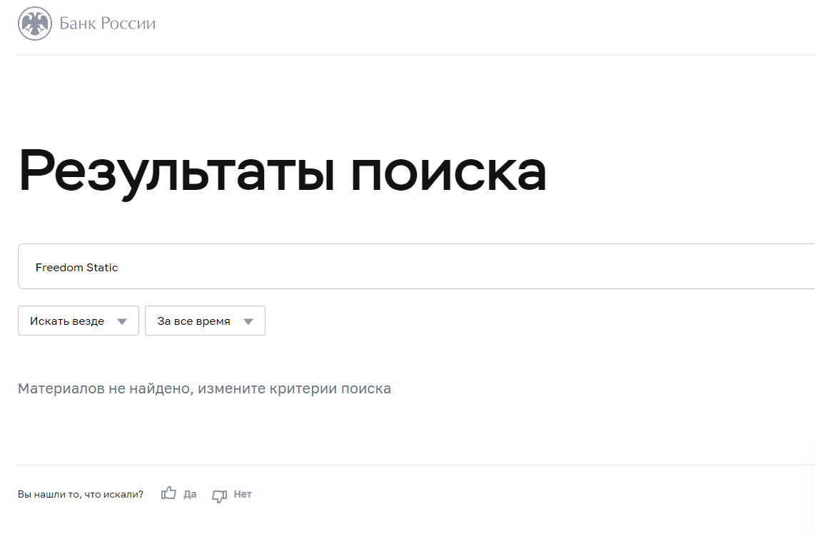 Скорее всего брокер “Фридом статик” писал что имеет лицензии от внешних и внутренних регуляторов. Однако, поискав на них информацию на официальном регуляторе Центрального Банка РФ — ничего нет.