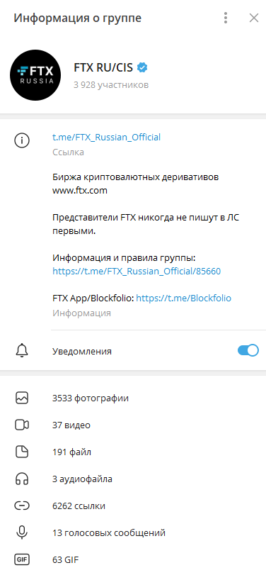 Для российских клиентов больший интерес представляет русскоязычный телеграмм-канал. Он носит название FTX RU/CIS и создан под ником ftx russian official. На него подписано чуть менее 4 тысяч человек.