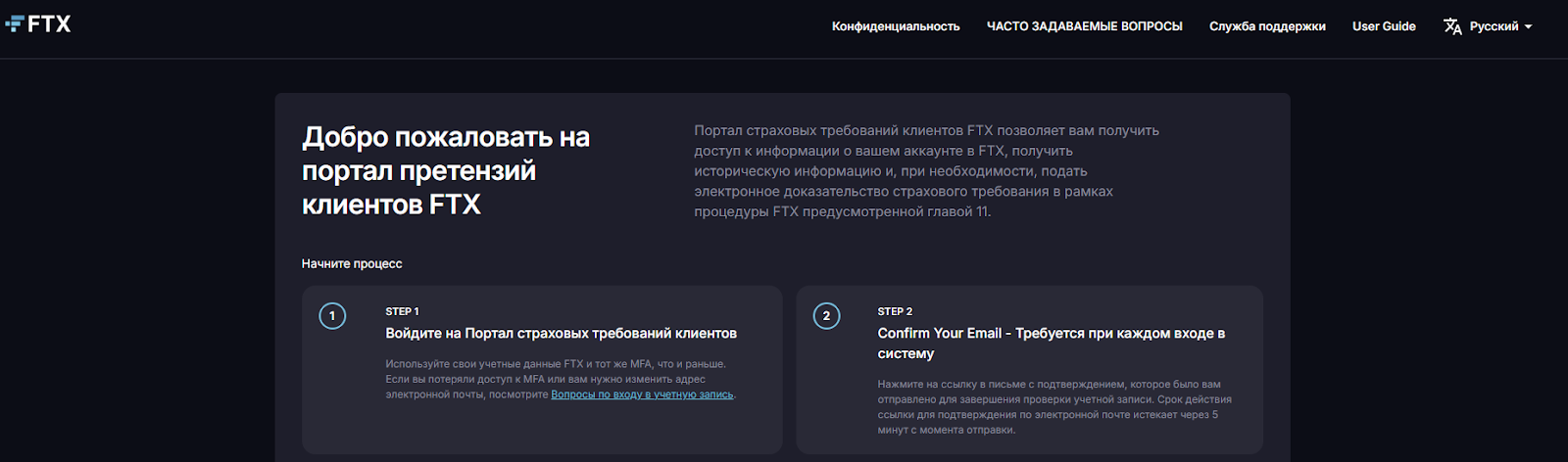 На одном из поддоменов сайта биржи криптовалют FTX, а именно Claims ftx com, представлена информация о страховых требованиях клиентов. Он позиционируется, как портал претензий.