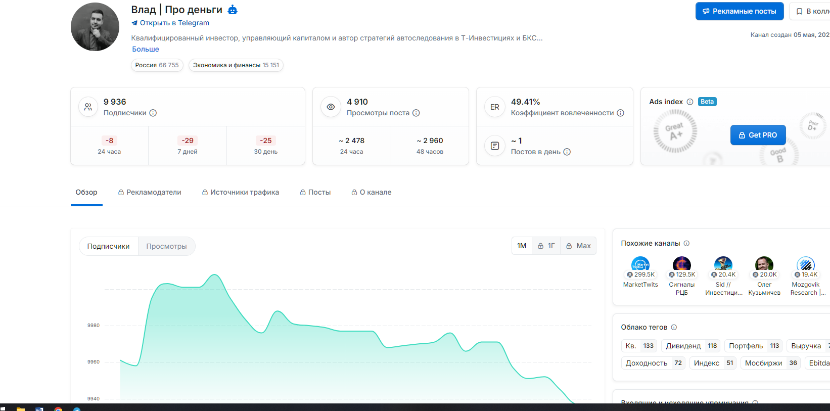 Так как методичка этого автора популярностью не пользуется, то странно, что на канал инвестора подписано 9993 человек. Из них активно просматривает посты не больше 6 000 человек. Комментарии пишет не больше 10 пользователей.