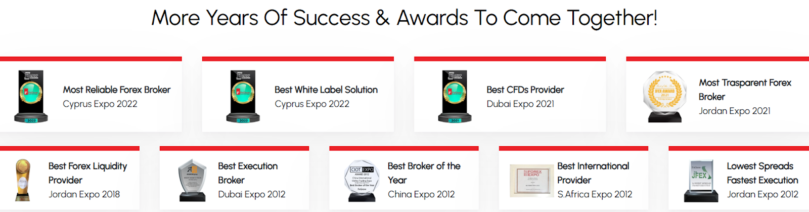 Если говорить еще о тревожных звоночках, подрывающих доверие к заявленной на платформе информации, то это мировое признание. Брокер получил множество престижных наград, которые представил на своем сайте, в том числе в номинации “Самый надежный форекс-брокер” за 2022 гг.