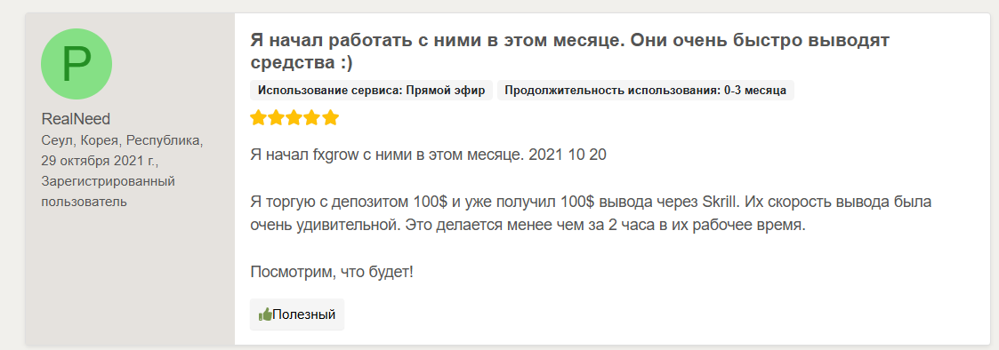 Оставьте Ваш отзыв о работе с Fx Grow