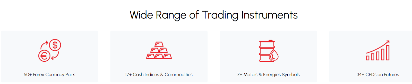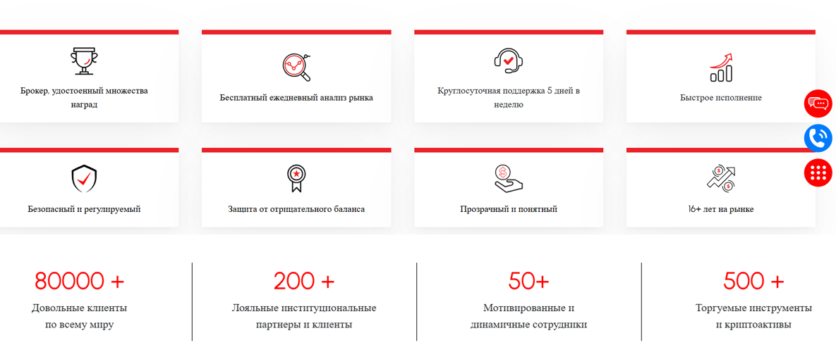 У брокера большой пул возможностей: 60+ валютных пар Forex, 17+ индексов, 34+ CFD, включая золото и сырую нефть, криптовалюты и прочие.