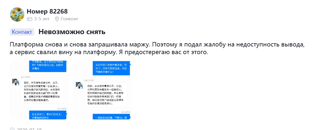 Говоря в целом, ситуация настораживает. Где правда, а где фейк? Если детально подойти к анализу негатива, то большая часть обвинений в мошенничестве выражается одним или двумя предложениями, без какой-либо конкретики. Нет детализации фактов о том, когда именно клиент обратился в поддержку и на каком основании ему отказали. Нет скринов переписки со службой, которые добавляют в подтверждение своих слов. Нет подробного изложения проблемы с датами и цифрами, где клиент пошагово рассказывает о том, что предпринял, куда написал и что ему ответили.