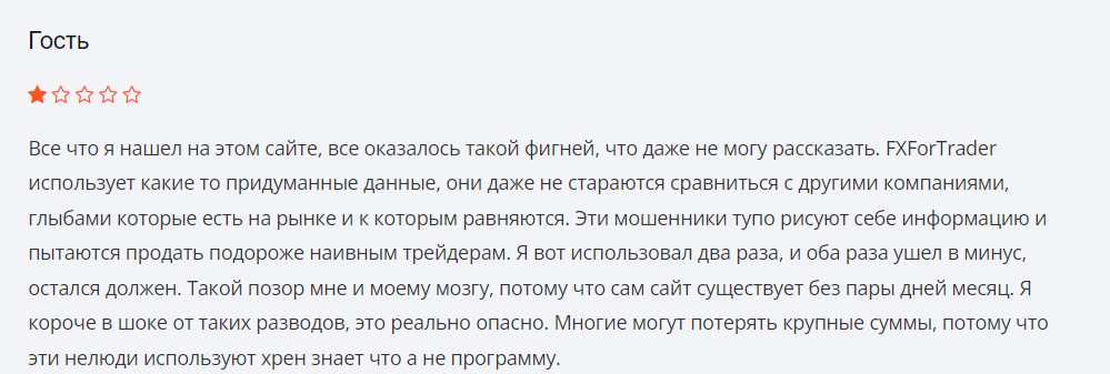 Компания собрала максимальное количество отрицательных отзывов. Ее репутация омрачена тем, что купленные программы не действуют. Клиенты находятся в убытке, действуя по правилам софта FxForTrader ProMaker.
