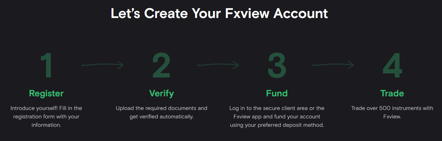 Перед работой на Fxview нужно пройти стандартные этапы регистрации. Пользователю требуется создать учетную запись, внести свои персональные данные и пройти верификацию. После подтверждения можно зайти в личный кабинет и выбрать тип счета. Далее следует пополнить баланс, запустить терминал и настроить параметры.