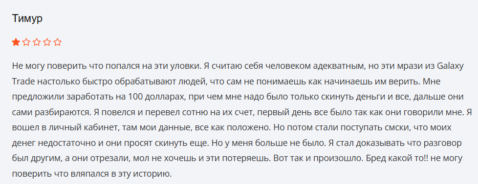 Отзывы трейдеров о работе с Galaxy Trade Club