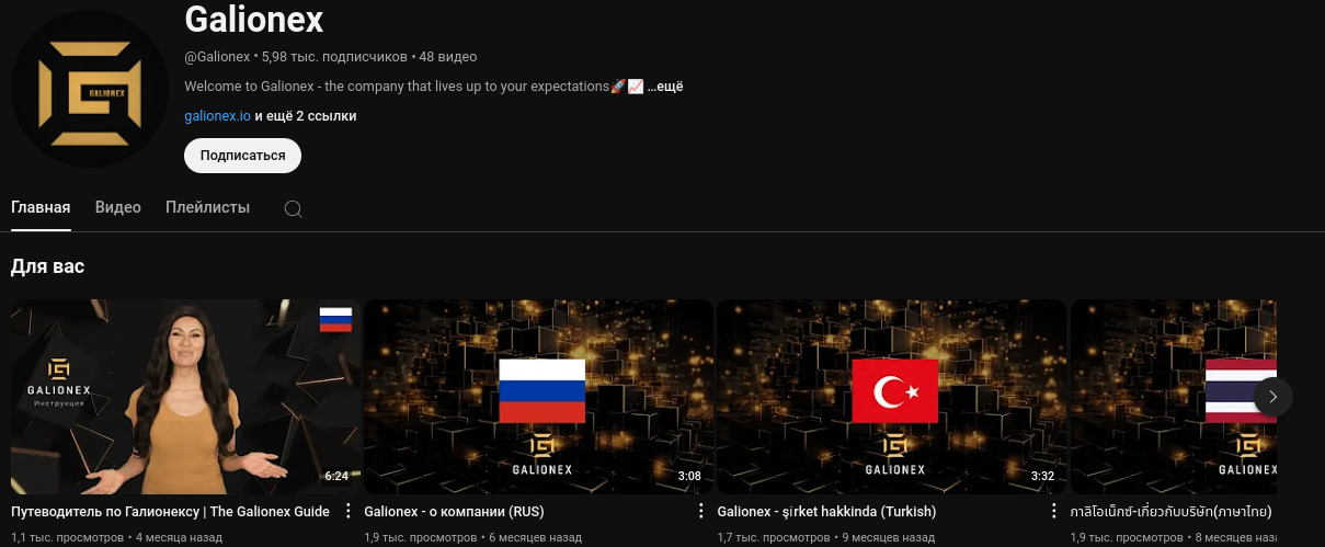 Комментарии к контенту закрыты, да и чата отдельного нет. Из-за этого нет возможности убедиться в реальности аудитории проекта galionex io. Помимо телеграма есть ютуб-канал. Там подписчиков меньше — чуть более 5.9 тысяч, а вещание происходит с 1 августа 2023 года.