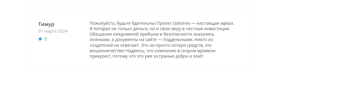 - Множество отрицательных отзывов, в которых galionex io называют скамом.