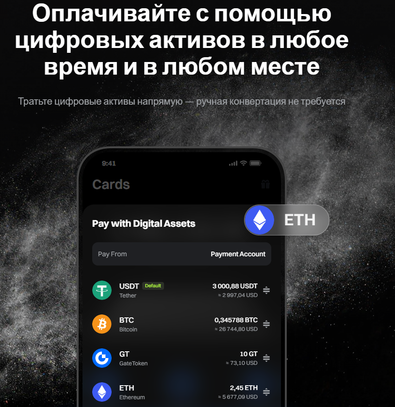 На первую половину 2026 года на криптокошельке карты «Гейт» можно хранить BTC, ETH, USDT и GT.