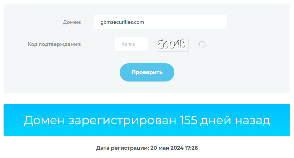 Окончательно подтверждают обман еще несколько фактов. Во-первых, наличие онлайн-терминала для трейдинга trades gbmsecurities net. На оригинальном сайте ничего подобного нет, и такая опция не предоставляется. Во-вторых, если все же компания решила выйти на российский рынок, то у нее должна быть и соответствующая лицензия, выданная Центральным Банком РФ. Однако ее, конечно, нет. Создатели прикрываются британской лицензией, выданной настоящей платформе. В-третьих, домен площадки зарегистрирован всего 2 месяца назад, это и близко не 16 лет назад, и даже не 14.