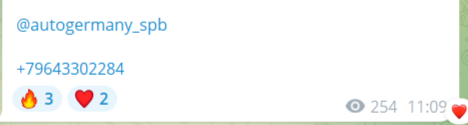 Подписчики не могут оставлять комментарии под постами, а реакции проставлять возможность есть. Эмоции под публикациями только радостные, можно предположить, что аудитория довольна работой Олега и его команды. Однако, админ, скорее всего, либо редактирует посты, либо запретил подписчикам канала в Тг Germany Auto проставлять недовольные смайлики.