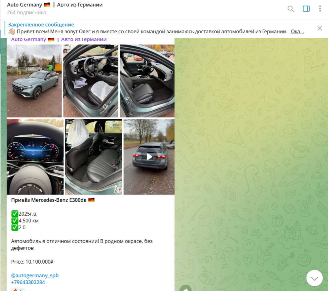 - Об авторе канала в Telegram Germany Auto Олеге нет никаких данных, неизвестно, какой опыт он имеет в продаже авто из других стран.