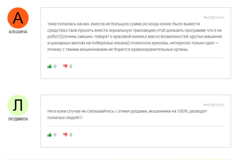Положительных отзывов о данном проекте в сети нет. Несколько, скорее всего сфабрикованных, отзывов с сайта мы не берем во внимание.