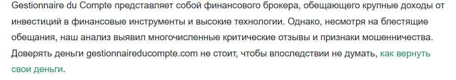 Обзор проекта Gestionnaire du Compte: реальные отзывы пользователей платформы Gestionnaireducompte Com, разбор деятельности крипто-валютного брокера