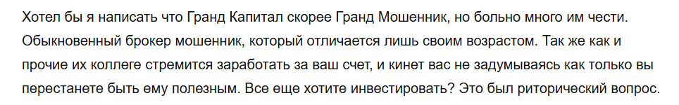 То, что в сети пишут о Grand Capital мы в полной мере можем отнести и к нашему фигуранту.