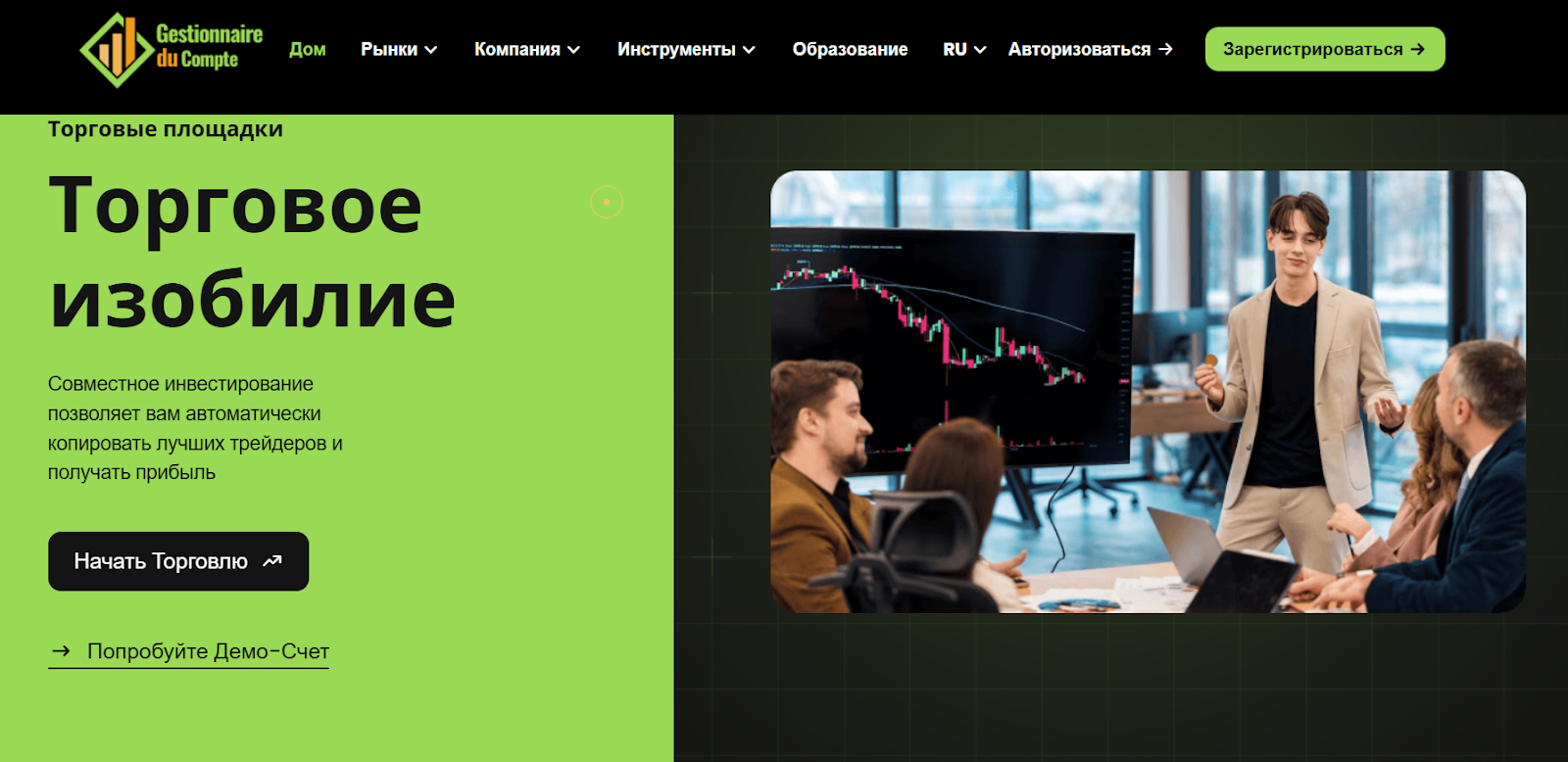 Торговая платформа Gestionnaireducompte, обзор которой представлен в этой статье, позиционирует себя как инструмент для трейдинга мирового технологического уровня. Мы проанализируем работу этого брокера, чтобы понять, можно с ним заработать или это развод.