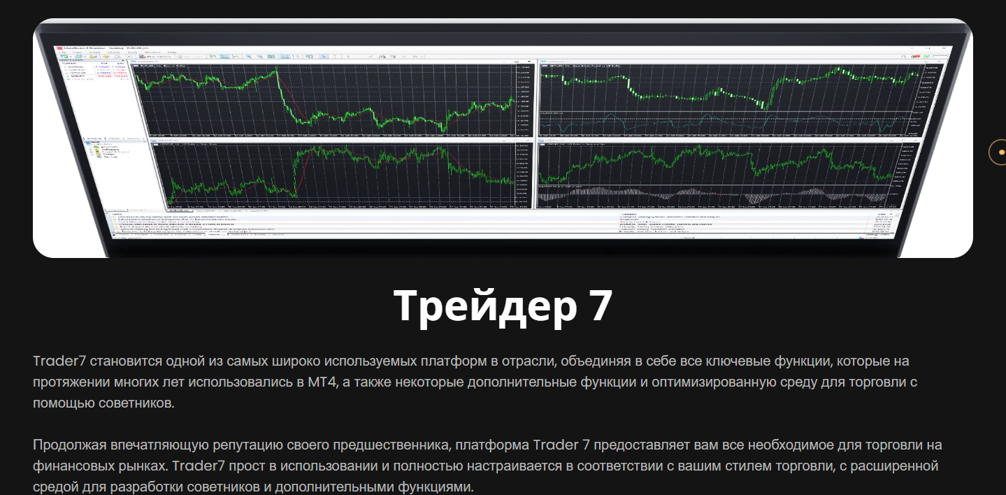 Площадка Трейдер 7 еще более технологичная и обладает большим набором инструментов, предназначена для продвинутых трейдеров.