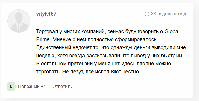 Отзывы о Global Prime разнообразны и варьируются от положительных до критических. Многие трейдеры высоко оценивают честность брокера и его преимущества: