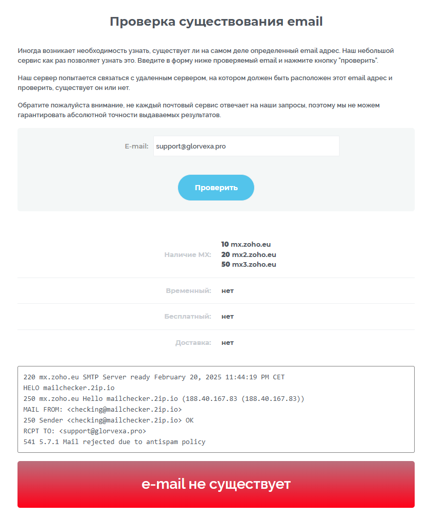 - адрес компании и email являются недействительными;