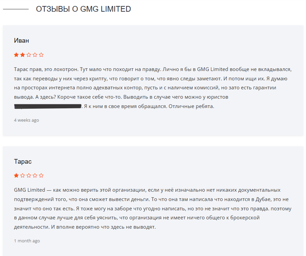 Помимо отрицательных отзывов о Gmg Limited можно привести и другие факты, подтверждающие мошеннический характер деятельности. В том числе: