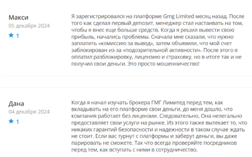 Обзор брокера Gmg Limited: отзывы реальных пользователей и анализ деятельности User Gmg Limited Org