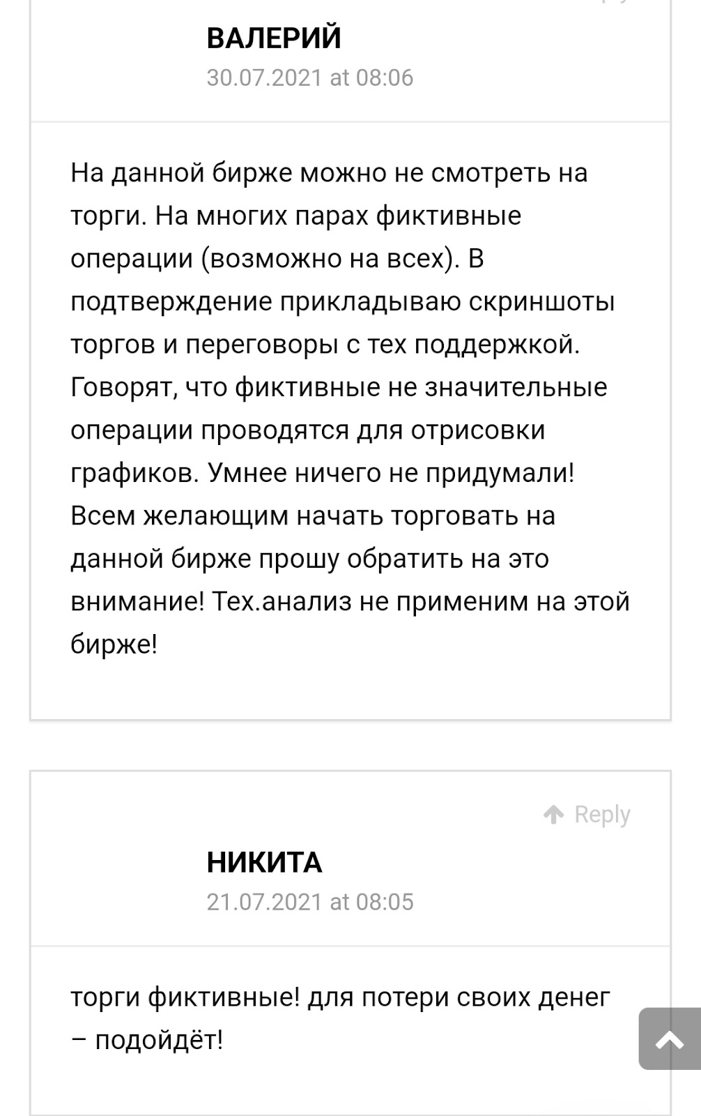 Валерий обвиняет проект в проведении фиктивных операций, что крайне смущает мужчину. Он советует проявлять повышенное внимание при работе с биржей. Аналогичные данные сообщает Никита.