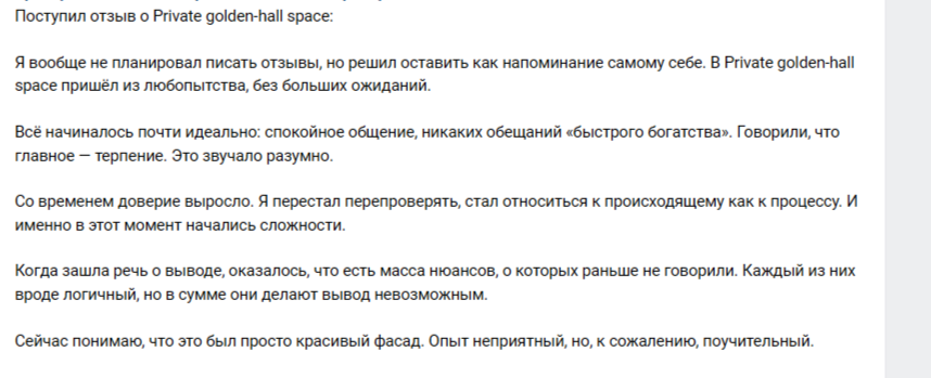 Обзор площадки Golden Hall Space: отзывы реальных пользователей и анализ деятельности криптовалютной биржи «Голден Холл»