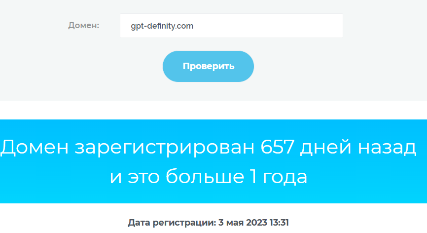 Платформа принадлежит компании GPT Definity Ai. Но информация о ней не указана. Неизвестны реквизиты фирмы и адрес ее регистрации. Также непонятно, в каком году был создан проект. Но в ходе проверки было обнаружено, что он существует с 3 мая 2023 года.