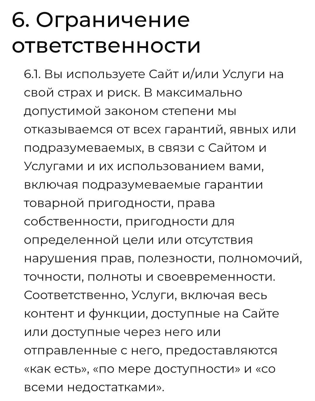 - платформа снимает с себя всю ответственность;