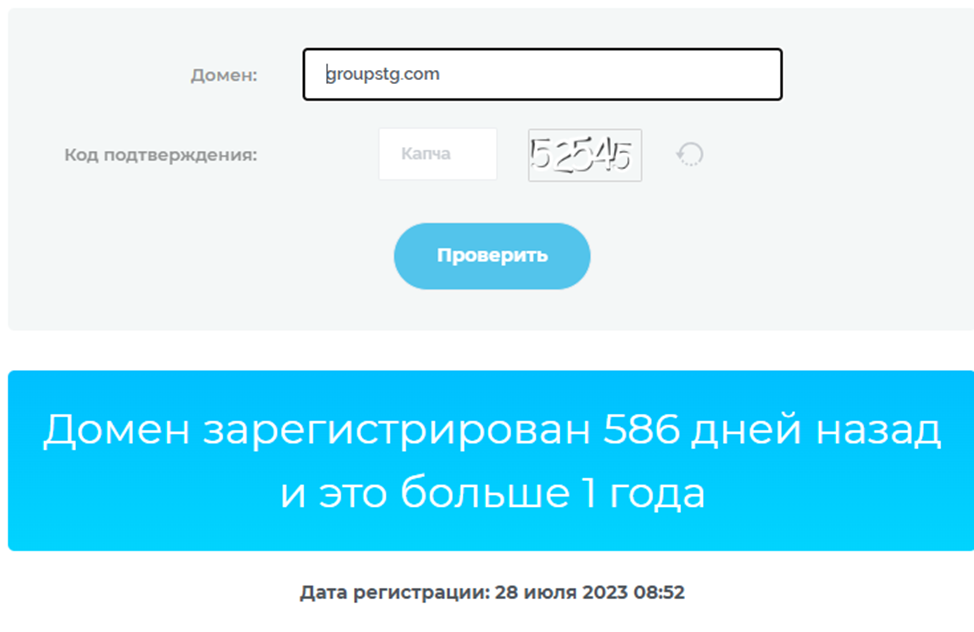 Компания была основана в 2015 году, в 2017 начала работать в России. По словам создателей, брокерская платформа регулируется Великобританией. На сайте опубликована лицензия под номером 971797, выданная в марте 2022 года. Проверим действительный срок работы организации по возрасту домена groupstg com. Проверка показала, что регистрация сайта прошла в июле 2023 года.
