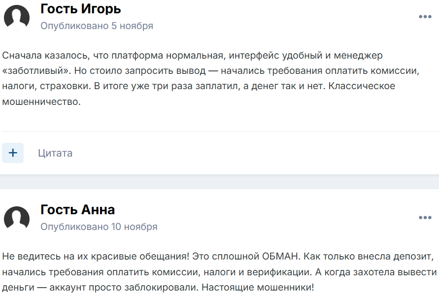 В итоге ни прибыль, ни свои деньги вывести с баланса нельзя: после попадания на депозит они сразу отправляются в карманы мошенников.