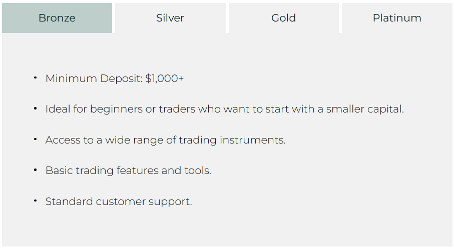 Минимально для торговли понадобится $1000, за которые клиент получит тариф Bronze с базовыми функциями. На самом продвинутом тарифе Platinum за $500 000 обещают возможность получать консультации от опытных инвесторов и трейдеров, аналитику и приоритетный доступ к новым функциям.