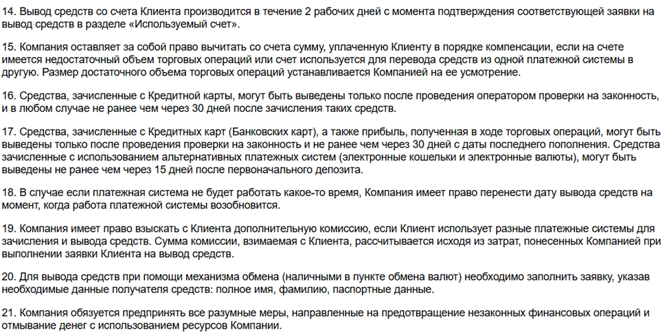 С политикой возврата средств можно ознакомиться на странице Gruna Vel Info. Минимальный срок обработки заявки составляет 2 дня. Если клиент пополнял Grunavel-счет с кредитной карты, ранее не проходил финансовую проверку биржи, поставить деньги на вывод можно будет только через 30 дней с момента последнего пополнения, завершения верификации. В отзывах клиенты биржи Grunavel пишут, что даже строгое выполнение всех правил и требований не позволяет вернуть вложенные деньги. Брокеры находят дополнительные причины чтобы не платить или удаляют аккаунт с положительным балансом без каких-либо разъяснений.