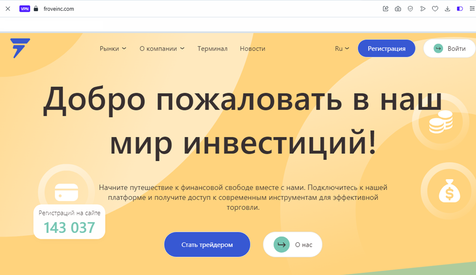 Сайт брокерской компании создан на базе известного шаблона, который не раз был замечен в финансовом скаме. Он использовался на платформах Yosienvio Com, Yosien-vio Pro, Froveinc Com и других. Все они имеют плохие отзывы, а некоторые и открытые уголовные дела.