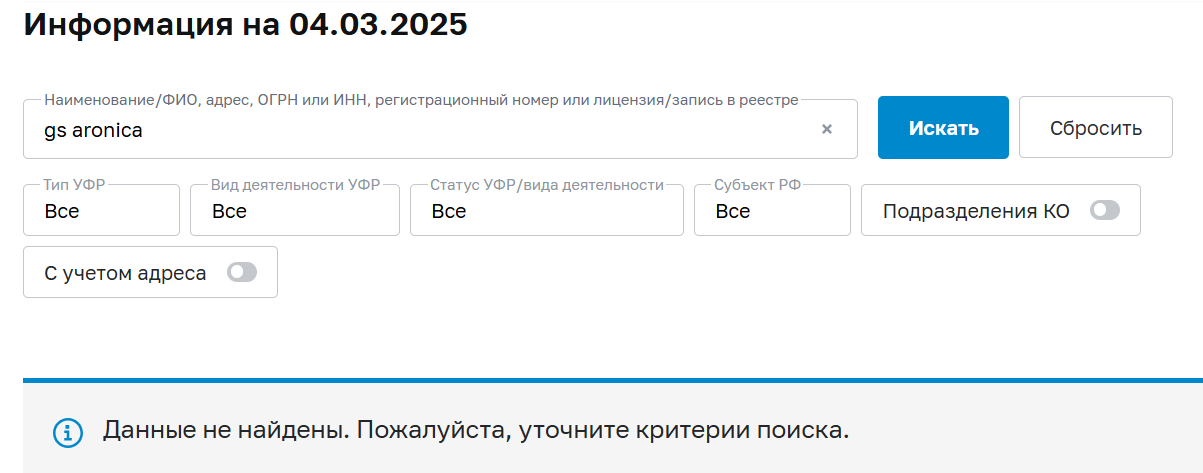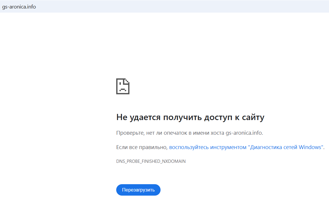 У проекта 3 домена. Gs-aronica.info сейчас, но 5 марта 2023 года, не открывается.