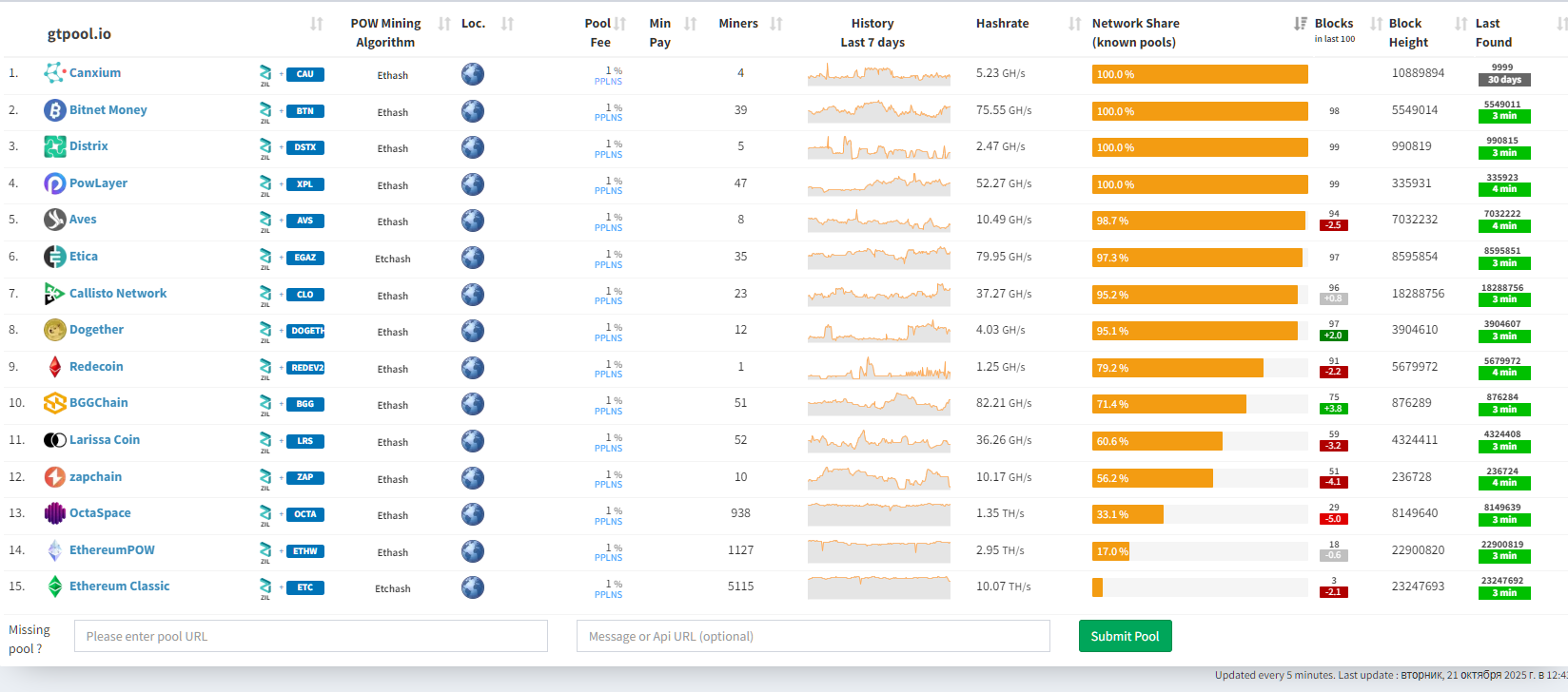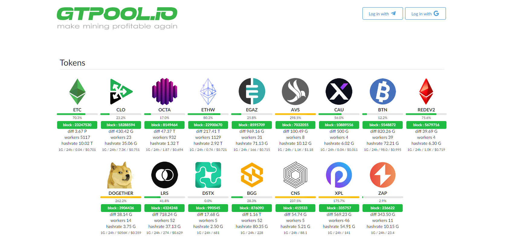 Майнинг-пул Gtpool io обеспечивает добычу перспективных альткоинов, в ассортименте пула более 20 вариантов криптовалют для майнинга. Пул поддерживает карты AMD и NVIDIA, распространенные модели асиков на ETCHash и Octa. Разработчики предлагают удобное APK для смартфонов Apple и Android.