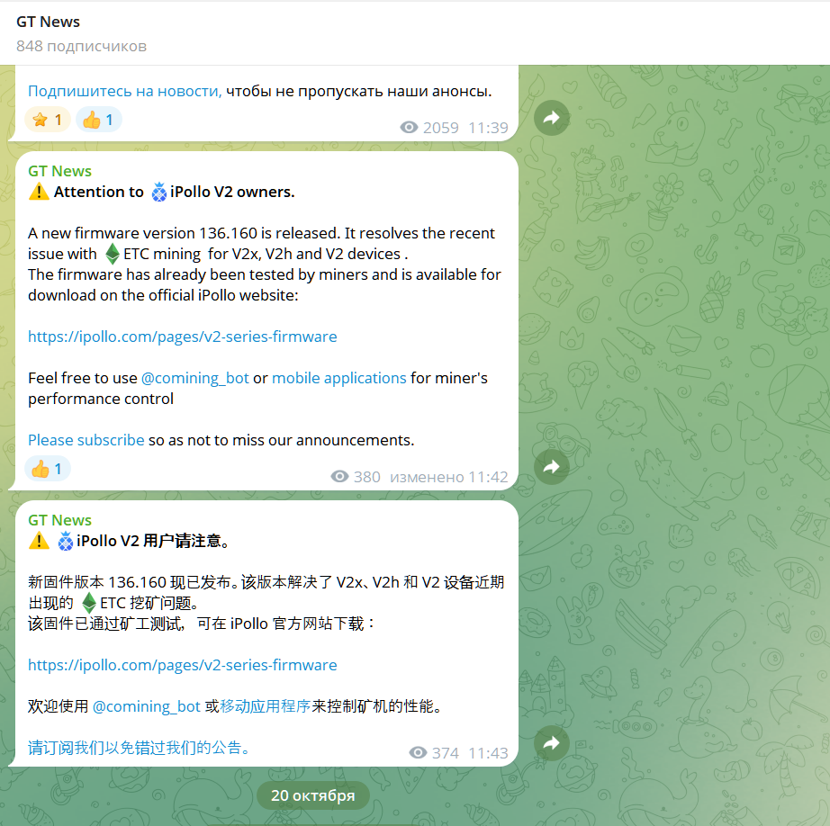 Техническая поддержка проекта активно отвечает на все вопросы пользователей в ТГ канале. Подробно объясняет причины сбоев, задержек в работе оборудования. Предлагает технические решения при невозможности подключения к пулу, новые прошивки для асиков.