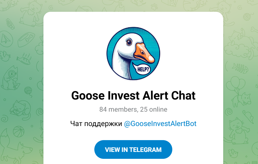 Разработкой и доработками занимается Алексей Шугаев, его контакты указаны открыто. У проекта есть отдельный чат Goose Invest Alert Chat, в котором на момент анализа около 80 с небольшим участников и 20–30 человек онлайн.