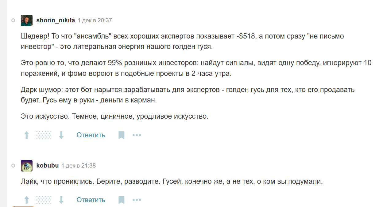 “Гусь” бот: отзывы и реакции трейдеров