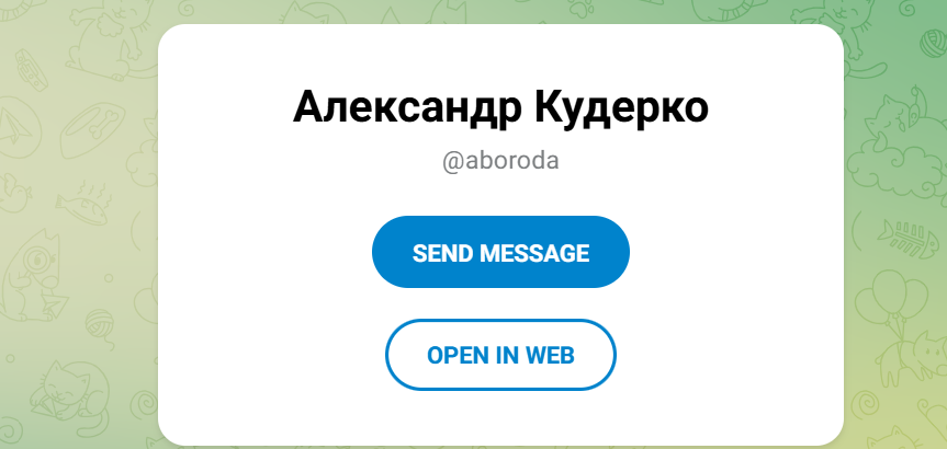 В качестве менеджера и точки связи в телеграмм фигурирует Александр Кудерко, аккаунт @aboroda.