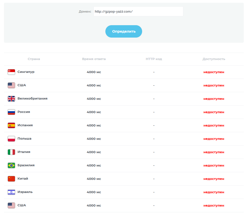 Домен сайта Gzpop ya22 com зарегистрирован менее месяца назад, 21 января 2025 года. Несмотря на это ресурс недоступен, причем не только с территории РФ, но и из других стран.