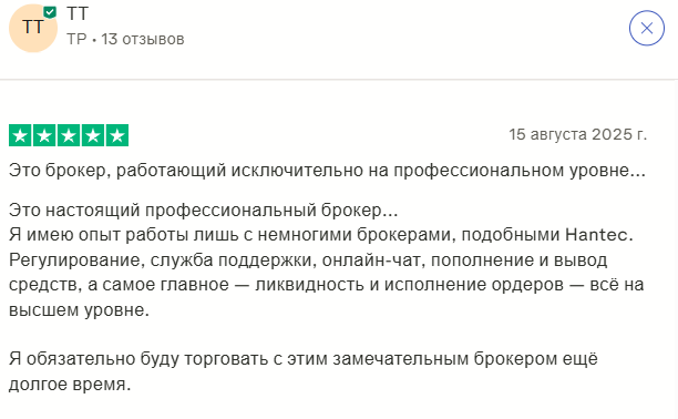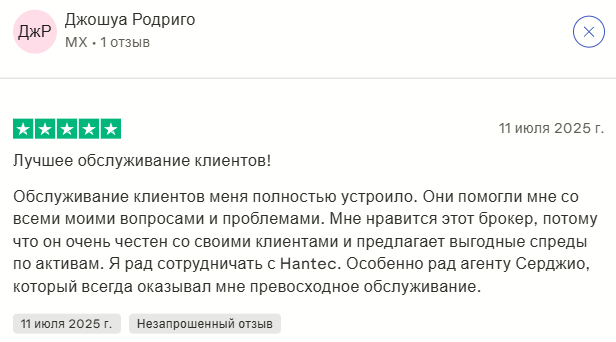 На Trustpilot проект набрал 4,9 из 5 баллов. Больше 2000 отзывов о Hantec Markets. Клиенты хвалят образовательную программу и качество подготовки. Многие отмечают профессионализм техподдержки и скорость решения вопросов.