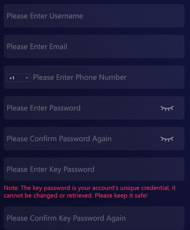 Для начала работы клиент должен зарегистрировать учетную запись, указав следующие данные: